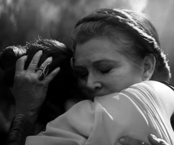 Y, sin embargo, Leia es un oasis en un universo absolutamente masculino, tal vez porque el género de la ciencia ficción siempre se ha presupuesto que era de interés solo para los espectadores masculinos. En esta trilogía no hay presencia femenina, es decir, no hay mujeres piloto, no hay mujeres en la tripulación del imperio, no hay mujeres, básicamente. Vamos, que en aquella galaxia muy muy lejana solo había cabida para una princesa, el resto de mujeres o seres femeninos de las diferentes especies, estaban recluidas y escondidas. En La guerra de las galaxias, aparte de Leia, solo entra en escena la tía de Luke, pero su participación es absolutamente episódica, breve y sin ningún tipo de trascendencia. Habrá que esperar a El retorno del Jedi para ver algún que otro personaje femenino como Mon Mothma o la bailarina y cantantes de la guarida de Jabba the Hutt (estos últimos, sin ni siquiera una línea de guion, en papeles reservados a las mujeres, es decir, cantantes de cabaret y esclavas para el disfrute del Hutt). De hecho, es en esta película donde el personaje de Leia también es convertido en objeto de deseo de la mirada masculina cuando aparece convertida en la esclava de Jabba, vistiendo un exiguo modelito con el que ni siquiera Carrie Fisher se sentía cómoda. Si hasta entonces, se había librado en cierto modo de que su personaje se convirtiera en mito erótico, esta escena, tras haber aparecido vestida como «cazarrecompensas» para intentar rescatar a Han Solo, la devuelve al rol sexual que parece solo pueda atribuirse a las mujeres.