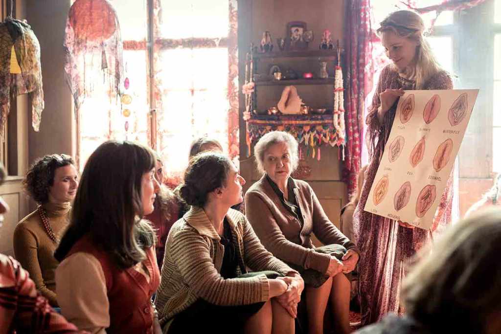 Y mientras, también se cuela la revolución sexual, porque estamos en los años 70 y el feminismo seguía allanando caminos. Y por revolución sexual se entiende, y así lo muestra Volpe en El orden divino, el descubrir la sexualidad femenina. El descubrir sus propias vaginas y descubrir su propio placer. El viaje que emprende Nora pues, la lleva a un autoconocimiento íntimo que nunca había tenido y a encontrarse con una sexualidad reprimida.