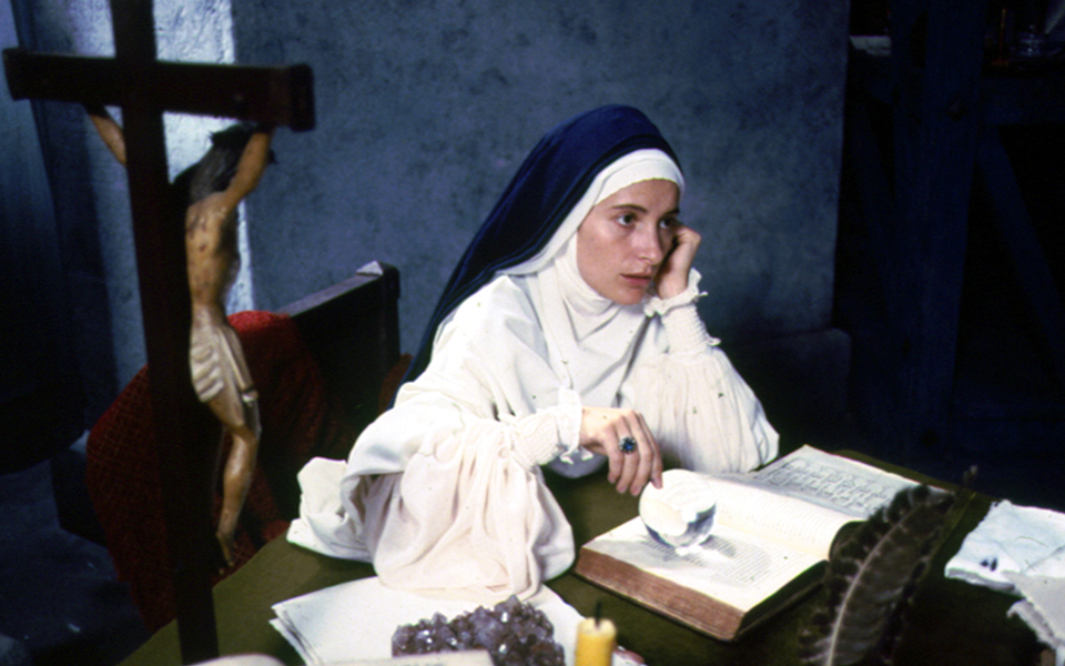 Toda la película está filmada entre muros, en interiores sin ninguna concesión al espacio abierto como metáfora de la libertad, porque la única libertad para las mujeres, cuando la conseguían, era interior, nunca física. Porque el espacio público no las correspondía, porque las paredes las constreñían a un pequeño lugar en el mundo. Con una paleta de color muy restringida, exceptuando las pinceladas coloristas de los ropajes barrocos, apenas hay concesiones más allá de los ocres, el blanco y el negro, propios del convento.