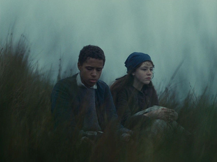 Y puesto que dedica la mitad de la película a la infancia, podemos hablar de que hay cuatro intérpretes protagonistas y, en mi opinión, los dos niños están mucho más cercanos a los personajes literarios que los adultos (James Howson y Kaya Scodelario). Shannon Beer está fantástica como la Catherine niña, su mirada, su interpretación, le dan al personaje ese misterio de no saber muy bien si es una heroína de novela o un espíritu perverso, tan pronto la odias como la amas. Su ambigüedad es absolutamente portentosa. Por su parte, Solomon Glave como Heathcliff también destila esa ambigüedad, en su caso, entre el desamparo y el ostracismo voluntario… resulta fascinante cómo materializa su dependencia de Catherine y cómo su sonora respiración es capaz de sustituir las palabras para acercarse más al monstruo en el que se convertirá de adulto, en el libro, pues en el filme, al directora no se atreve a tanto. La violencia vicaria y la infelicidad que causan a su alrededor, apenas se muestra en esta adaptación.