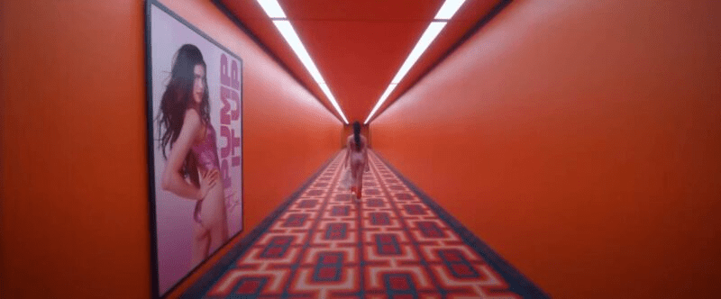 Mulvey, desde el psicoanálisis, escribió hace 50 años sobre la construcción de placer de la mirada y el cuerpo de la mujer como objeto de deseo y Coralie Fargeat lo utiliza aquí para construir su crítica. Entiendo que ella como mujer nos quiere someter, sobre todo a las espectadoras, a que miremos como hombres. El montaje que utiliza en las coreografías del programa de Elisabeth/Sue está totalmente construido como una mirada patriarcal y masculina. No nos deja libertad a la hora de mirar. Nos obliga a recrearnos en culos, escotes, tetas, bocas entreabiertas… Nos obliga a subvertir nuestra mirada, a pornificarla y por extensión a convertir en objetos los cuerpos hipersexualizados de las protagonistas. Un espectáculo completamente sexualizado en extremo. A ello, no sólo contribuye la mirada de la cámara o el montaje; también todo el diseño, el color, el vestuario, todo está al servicio de la mirada masculina, tan obvia que resulta insoportable. Y la directora no nos da otra alternativa, así es cómo nos miran, así es como el audiovisual sirve a las mujeres en bandeja de plata de escopofílicos empedernidos.