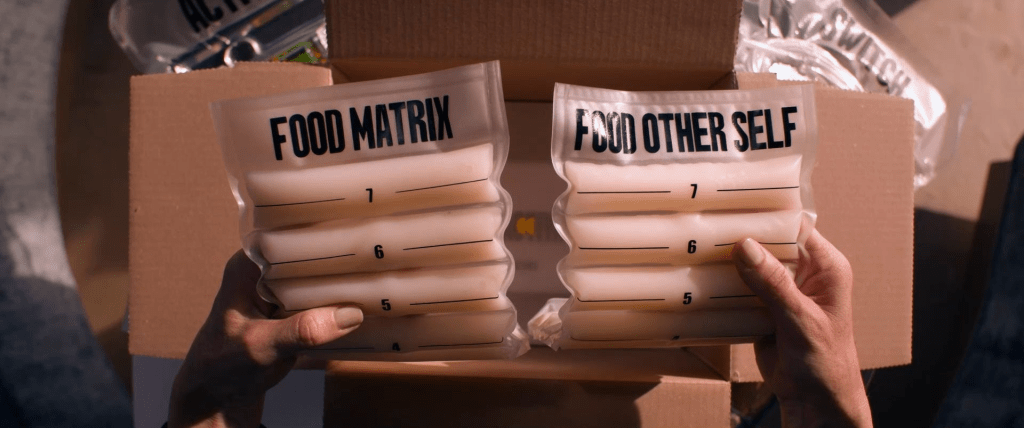 La comida, por tanto en el filme, se muestra como algo también excesivo, desagradable, repugnante. Y si bien ellos, como en la escena del restaurante con Denis Quaid, pueden comer compulsiva y asquerosamente todo lo que les pongan en la mesa, ellas apenas ingieren comida excepto cuando llega el atracón compulsivo que no es más que una forma de autocastigo por no conseguir los efectos deseados. Esa relación enfermiza y autodestructiva con la comida que Coralie Fargeat utiliza de una manera tan gráfica y revulsiva. De nuevo una dualidad, la comida real la que nos alimenta frente a la «comida» que nos «mantiene» vivas y, además, no nos engorda. Una es repugnante, la otra aséptica. Esto, también nos suena.